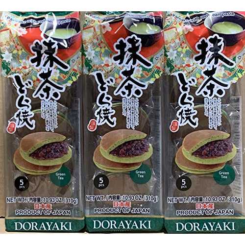 どら焼き 3個パック (合計15個) 32オンス 日本製品 (緑茶) Japanese Dorayaki Baked Bean Cake Pack of 3 ( 15 pcs Total ) 32oz Product of JAPAN (Green Tea)