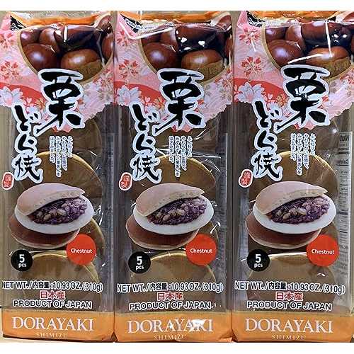 どら焼き 3個パック (合計15個) 32オンス 日本産 (栗) Japanese Dorayaki Baked Bean Cake Pack of 3 ( 15 pcs Total ) 32oz Product of JAPAN (Chestnut)