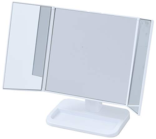 折りたたみ折りたたみ式折り畳み式・ホワイト ・・Color:ホワイト・折り畳み式・人気の三面鏡折りたたみ式の卓上スタンドミラーは、3種類の鏡が備わっており左右の鏡はスムーズに角度調整が可能です。鏡全体を前後180度まで調節可能ですので様々な角度から見ることができて大変便利です。設置する場所やテーブルに合わせたスムーズな角度調整が可能なのでお客様の環境に合わせた使い方ができます。またコンパクトに収納でき三面鏡は閉じることができるのでいつも清潔に保つことができます。・明るさ抜群のLEDライト付き化粧ミラーの周りに21個のLEDライトを搭載しており、お顔を明るく照らすことが可能です。顔全体を明るく照らすことでシミやくすみなどといった肌のアラを目立たせず、自然なツヤやなめらかさといった自然な仕上がりへと導いてくれます。照明のスイッチはタッチパネルになっており、無段階で明るさを調節できます。・2倍&3倍の拡大鏡付き立体三面ミラーですのでお顔の正面だけでなく、横顔や顔全体をしっかり確認することができます。2倍&3倍の拡大鏡により、明るく細かい毛穴の状態を隅々までチェッ化粧ミラー