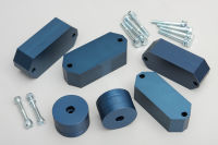 フロントコイルスプリングに変更後のランクル70バン (再販GRJ76/GRJ79も含む)に装着可能な、 バンプストップ延長ブロックキット1台分です。 40mm厚で、サスペンションストロークを有効に規制し、 ショック アブソーバーの底付き防止や 大径タイヤのボディーとの干渉、 サスペンションのへたり防止に使用する。 フロントはフレームのバンプストップラバー部と、 コイルスプリング内部の4個、 リアはフレームのバンプストップラバー2個分です。 コイルスプリング内部用は、 ホーシングに元々空いている穴に取り付け。 バンプラバー用4個は共締めボルトオンです。 アルミビレット、ブルーアルマイト仕上げ 送料区分 : 120★注意 サスペンション・ブレーキ関連パーツ等は重要保安部品です。 分解・取り付けは分解整備の資格のある認証工場で装着される事を前提に販売しております。 サスペンションやブレーキの交換には専門知識・専門工具も必要です。 個人で装着される場合は、自己責任をとれる方に限定します。 取り付けに自信のない方はご遠慮ください。 間違った取り付け等は死亡事故の原因となる可能性があります。 またサスペンション&ブレーキ・パーツ等には取り付け説明書は付属しません。 必ず車両毎のサービスマニュアルに従って締め付けトルクを確認の上装着してください。 弊社は楽天市場店の他に店頭や雑誌広告でも通信販売を行っており、 タイミングによっては商品が欠品になっている可能性もあります。 購入手続きが完了してもすでに完売となっている場合、納期が掛かる事をご了承ください。 実際の在庫状況等については受注確認メールでご案内いたします。