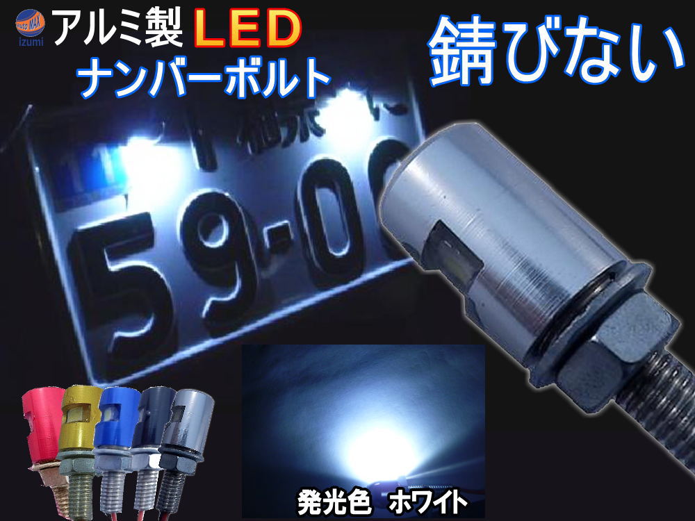 アルミナンバーボルト 【期間限定 ポイント10倍】 LEDナンバーボルト 汎用 防水 バイク LEDナンバー灯ボルト LED内臓ボルト 汎用品 ナンバー灯 ボルト LED