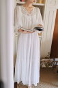 レディース ロング丈 ネグリジェ 綿 パフスリーブ 七分袖 ワンピース パジャマ 春夏秋 薄め お姫様 部屋着 ワンピース ルームウエア ゆったり 可愛い レース 花柄 ロング 体カバー 寝巻き 淑やか プリンセス ネグリジェ ドレス S M L XL