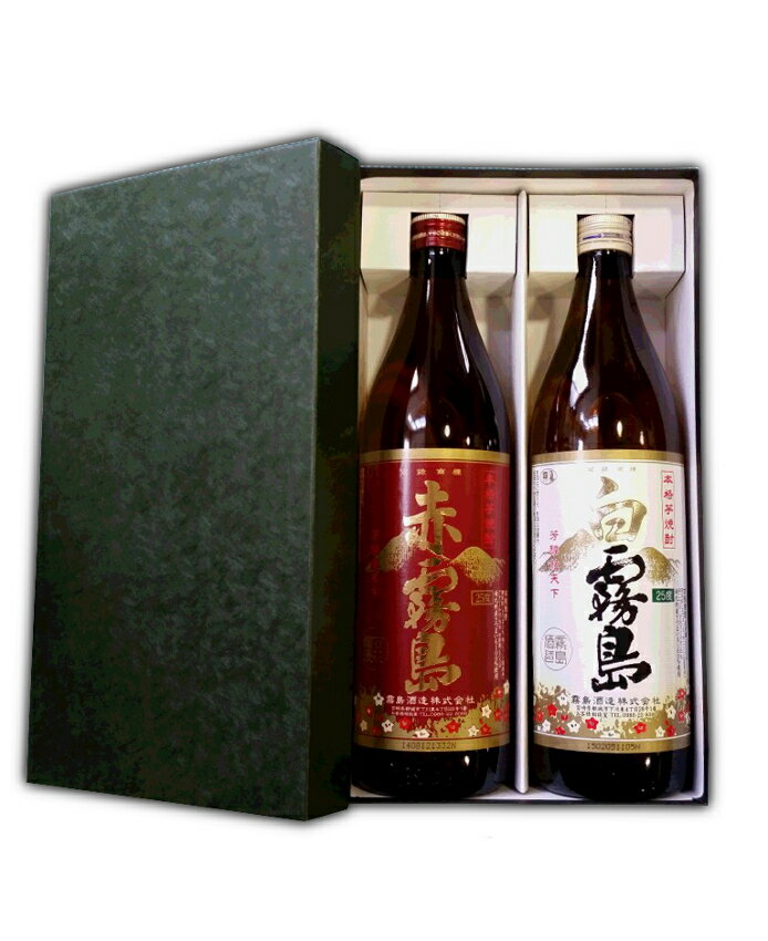 【セット内容】赤霧島25度900ml×1本 白霧島25度900ml×1本【商品説明】人気の本格芋焼酎の詰め合わせ。「ムラサキマサリ」で作ったフルーティな味わいの赤霧島、芋本来の香りを楽しめる白麹仕込みの白霧島。それぞれの個性を楽しめる呑み比べセットです。焼酎好きの方への贈答品などにどうぞ。