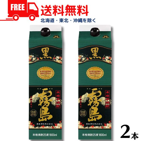 【送料無料】【芋焼酎】黒霧島 25度 1.8L パック 2本 1800ml 霧島酒造 【東北・北海道・沖縄・離島の一部を除く(東北は400円、北海道・沖縄はプラス1200円いただきます)】