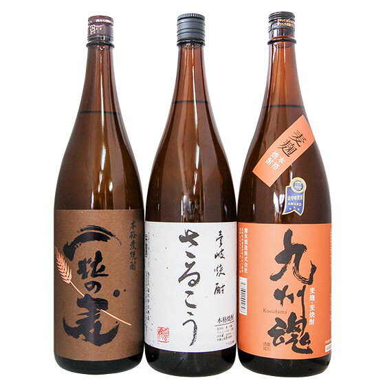 厳選九州麦焼酎当店人気トップ3セット 送料無料 一部地域を除く 一粒の麦・さるこう・九州魂(25゜) 1800ml