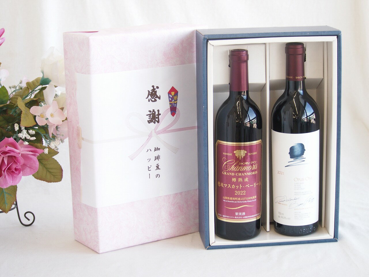 感謝の贈り物ボックス 世界が憧れオーパス・ワンと国産ワインセット(樽熟成穂坂マスカットベーリーA赤ワイン ミディアム(山梨県)750mlオーパス ワン 2021赤ワイン カリフォルニアワイン 750ml