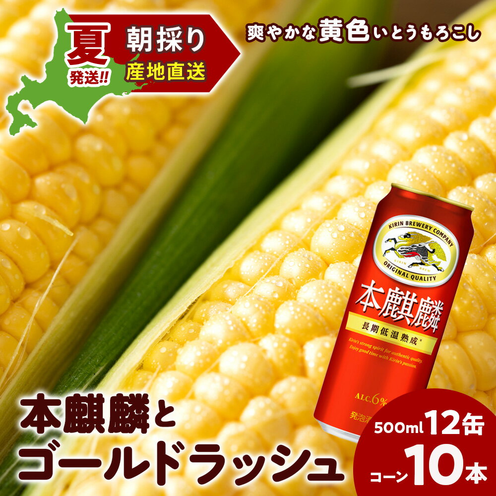 【ふるさと納税】2026年夏発送 キリン本麒麟500ml 12缶&黄色いとうもろこしゴールドラッシュ10本 北海道千歳産 野菜 とうもろこし とうきび キリンビール 麒麟ビール 【北海道千歳市】ビール ギフト ふるさと納税 麒麟 KIRIN