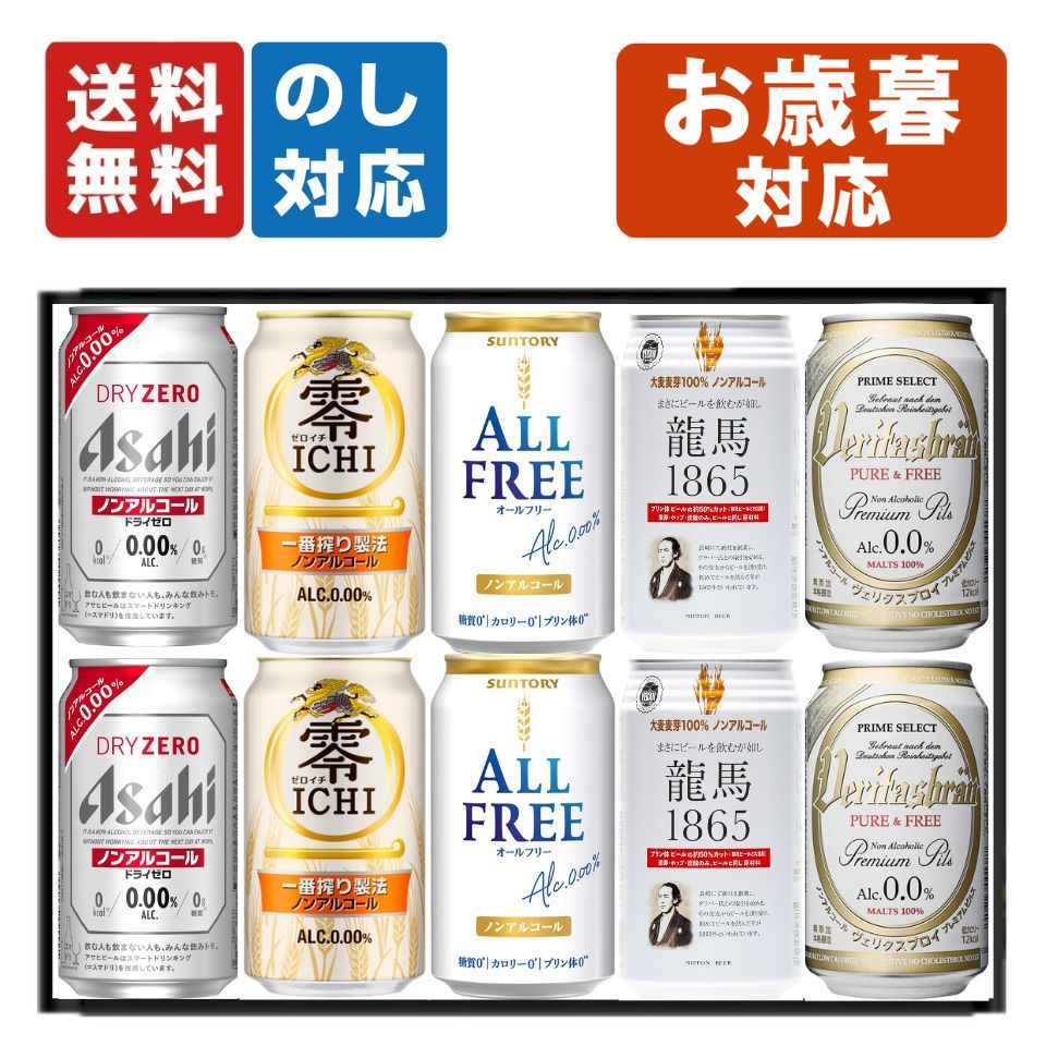 お歳暮 ノンアルコールビール 5種飲み比べ 10本セット 内祝い お返し ノンアル ギフトセット 詰め合わせ プレゼント アサヒ キリン サントリー ドライゼロ 零ICHI ゼロイチ オールフリー 龍馬 ヴェリタスブロイ