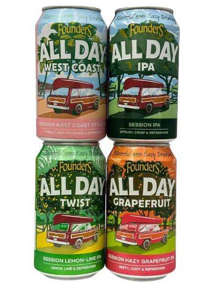 ファウンダーズ・オールデイ4種(IPA、West Coast、グレープフルーツ、ツイスト)355ml缶×4本セット (箱なし)【飲み比べ】【クラフトビール】【アメリカ】【Founders】