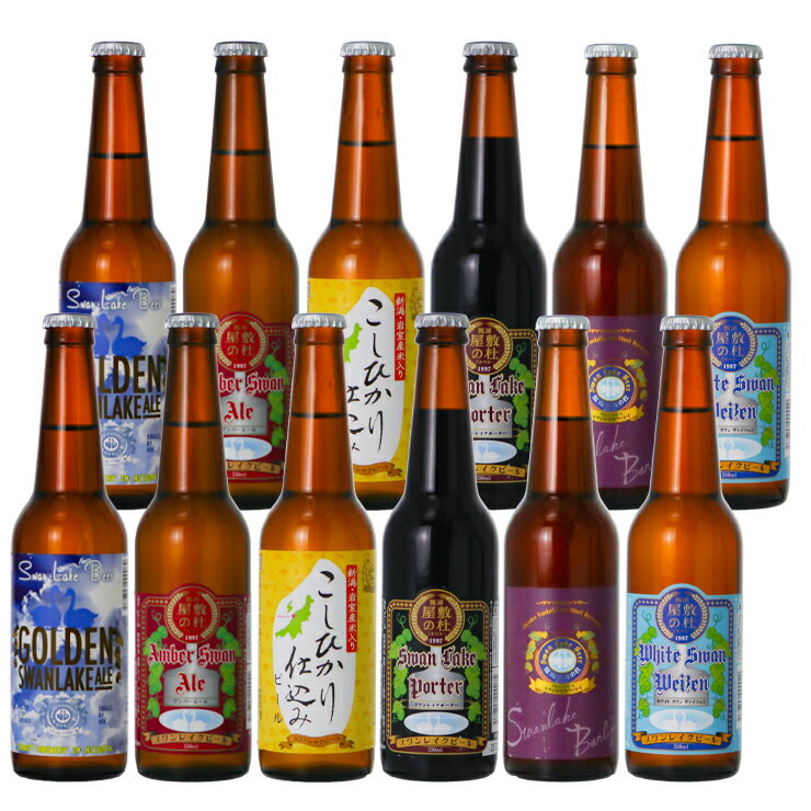 『365日毎日発送 土・日・祝日も発送します』 内容量 330ml×12本【スワンレイクビール】 ゴールデンスワンレイクエール×2本 ポーター×2本 岩室こしひかり仕込み×2本 アンバーエール×2本 ヴァイツェン×2本 スワンレイクバーレイ×2本 原材料 ビール:麦芽・ホップ・米(コシヒカリ) 度数 アルコール度数:5%(エール、アンバー、こしひかり、ヴァイツェン)・6%(ポーター)・10%(バーレイ) 製造元 株式会社天朝閣 瓢湖屋敷の杜ブルワリー 商品説明 ポーター・・数種類のスペシャルモルトを使用し、ホップの苦味・香りがバランスよく調和しています。※ポーターのラベルデザインは変わる場合があります。 ゴールデンスワンレイクエール・・ライトな口当たり。少し苦味も味わえます。 アンバーエール・・カラメルモルトを多く使用。モルトのふくよかな香りとホップ由来の強い苦味が特徴です。 岩室こしひかり仕込み・・地元新潟産こしひかりを含んだ下面発酵ビール(ラガー)モルトにはないお米の軽さも特徴です。 ヴァイツェン・・ヴァイツェン酵母と小麦を使用しフルーティーな香りと味が特徴です スワンレイクバーレイ・・通常の約倍の原材料を使用した長期熟成ビールです。味わいはフルボディで麦芽の甘みが強く、強いアルコールフレーバーとフルーティーなエステル香が複雑に絡み合い苦味がバランス良く調和しています。 保存方法 ビール要冷蔵 賞味期限 ボトル側面ラベルに記載。 ※ビールは熱処理をしていない為、種類により製造後60~120日 ※長期熟成ビールは12ヶ月・日本のクラフトビールの歴史とともに歩んできたスワンレイクビールでは、世界中の人々から旨いと言われることを誇りにしてます。 ・鮮度を大事にクール便でお届けいたします。届いてすぐ飲めるうれしいクラフトビールの飲み比べセットです。 ・御歳暮・御中元ギフト定番のビール。お世話になった方へ、感謝の気持ちを込めていつもとは違うちょっと贅沢なクラフトビールを。 ・年配の方へのご進物から流行りに敏感な世代の方へのプレゼントまで幅広い世代の方に。 ・ご自分用のご褒美に取って置きのクラフトビール。職人の技が造り出す旨いビール。徹底した品質管理でお届けいたします。 ・お祝いごと お中元の贈り物 結婚内祝い 寿の御祝い 年末年始のお使い バレンタインデー ホワイトデー 歓送迎会 母の日 父の日 など、様々なシーンでお使いいただけます。 ・お盆 年末 年始やGW(ゴールデンウィーク) の 帰省シーズンに ご家族ご親戚で、ご兄弟・ご友人とお楽しみいただけます。 ・各種のし(熨斗)対応:お歳暮(歳暮、御歳暮)、お中元(中元、御中元) 暑中見舞い 残暑見舞い 内祝い 快気祝い 御礼(お礼) 御祝 出産祝い(出産内祝い) 結婚祝い(結婚内祝い) 入学祝い 入学内祝い 退職祝い 寿 御餞別 還暦祝い 古希祝い、喜寿祝い 傘寿祝い 米寿祝い 卒寿祝い 白寿祝い 百寿祝い 開店祝い 粗品 志 お供 御供物 香典返しなどご指示ください。お名前もお入れいたします。熨斗の表書き・水引き・名入れをご指示ください。 ・メッセージカード 定型文・フリーメッセージに対応いたします。 ・贈答用では緩衝バックに入れて汚れ・傷から守ってお届け。自分用では余計な包装をせず箱だけでお届けするエコ仕様です。 ・この他にスワンレイクビールに合うよう作られたソーセージとのセットなど様々なビールセットをご用意しております。