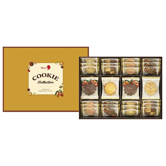●商品内容 クッキー(チョコレートチップ・ストロベリーチョコレートチップ・ジャンドゥヤ&ホワイト・ダージリンティー)×各3、クッキー(カカオ・バター・リーフパイ)×各2 ●パッケージサイズ:23×27.7×4.9cm ●賞味期限:常温4ヶ月 食感いろいろ。カカオとバター香るクッキーメリーこだわりのチョコレートやコク深いバターを使用した、それぞれ食感の異なるクッキーアソート。※商品は十分にご用意しておりますが、万一品切れの場合や、 やむを得ない事情により中止や変更になる場合がございますので、ご容赦ください。 【ご用途】 各種御祝、各種内祝いギフト 贈り物 内祝い 内祝 出産内祝い 結婚内祝い 御祝 快気祝 快気内祝 御礼 御中元 暑中御見舞 残暑御見舞 御歳暮 御年賀 寒中御見舞 プレゼント 母の日 父の日 敬老の日 クリスマス 合格祝い 進学内祝い 成人式 御成人御祝 卒業記念品 卒業祝い 御卒業御祝 入学祝い 入学内祝い 就職祝い 入園内祝い 御入園御祝 お祝い 御祝い 金婚式御祝 銀婚式御祝 御結婚お祝い ご結婚御祝い 御結婚御祝 結婚祝い 結婚式 引き出物 引出物 引き菓子 御出産御祝 ご出産御祝い 出産御祝 出産祝い 御新築祝 新築御祝 新築内祝い 祝御新築 祝御誕生日 誕生日祝 七五三御祝 初節句御祝 節句 昇進祝い 昇格祝い 就任 御供 お供え物 粗供養 御仏前 御佛前 御霊前 香典返し 志 進物 粗供養 偲草 偲び草 茶の子 法要 仏事 法事 法事引き出物 法事引出物 年回忌法要 一周忌 三回忌 七回忌 十三回忌 十七回忌 二十三回忌 二十七回忌 御開店祝 開店御祝い 開店お祝い 開店祝い 御開業祝 周年記念 来客 お茶請け 御茶請け 異動 転勤 定年 退職 退職挨拶回り 転職 お餞別 贈答品 粗品 粗菓 おもたせ 菓子折り 手土産 心ばかり 寸志 新歓 歓迎会 送迎会 新年会 忘年会 二次会 記念品 景品 開院祝い お礼 謝礼 御返し お返し お祝い返し 御見舞御礼 快気祝い 快気内祝い お土産 贈答品 プチギフト 御見舞 退院祝い 全快祝い 御挨拶 ごあいさつ 引越し ご挨拶 引っ越し お宮参り 御祝 お年賀 御年始 初盆 お盆 お中元 お彼岸 残暑見舞い 寒中お見舞 お歳暮 還暦祝 その他ギフト全般