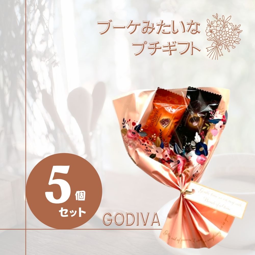 GODIVA ゴディバ チョコレート マスターピース 5個セット お菓子ブーケ ミニ 発表会 お菓子のブーケ お配り用 ギフト ブーケ 可愛い チョコ詰め合わせ 高級チョコレート 職場に配る クリスマス お菓子 個包装 退職時