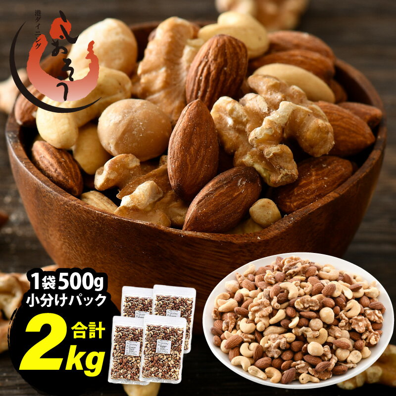 【ふるさと納税】 ミックスナッツ 4種 2kg (500g×4袋) チャック袋付き 食塩不使用!【クルミ アーモンド カシューナッツ マカダミアナッツ くるみ 生ナッツ 焙煎 素焼き 無塩 おつまみ お菓子 お取り寄せ おやつ 小分け】 [e70-a023]