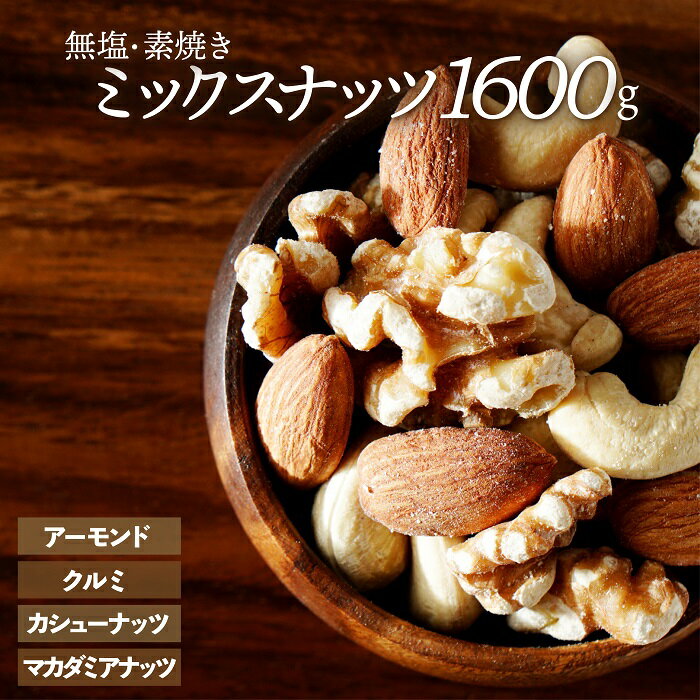 【ふるさと納税】無塩・素焼きの4種のミックスナッツ1,600g【エイジングケアに最適!】 アーモンド クルミ くるみ カシューナッツ マカダミアナッツ ヘルシー 栄養 美容 小分け チャック付き.AB458