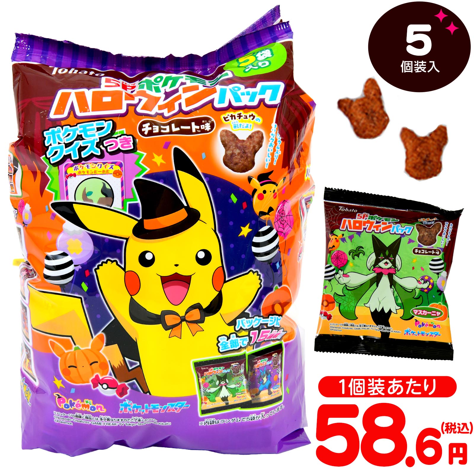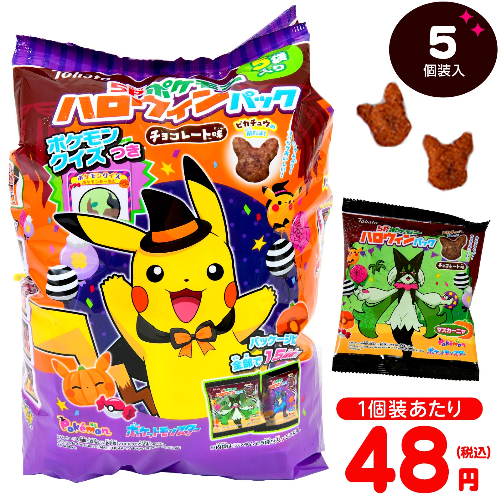 【50%OFFクーポン配布中】 東ハト ポケモン ハロウィンパック チョコレート味 5個装入 { ハロウィン菓子 まとめ買い 販促 イベント 小分け チョコ スナック ポケットモンスター }{ プチギフト お菓子 限定 限定パッケージ 個包装 配布 }[25K20]{配送区分D}