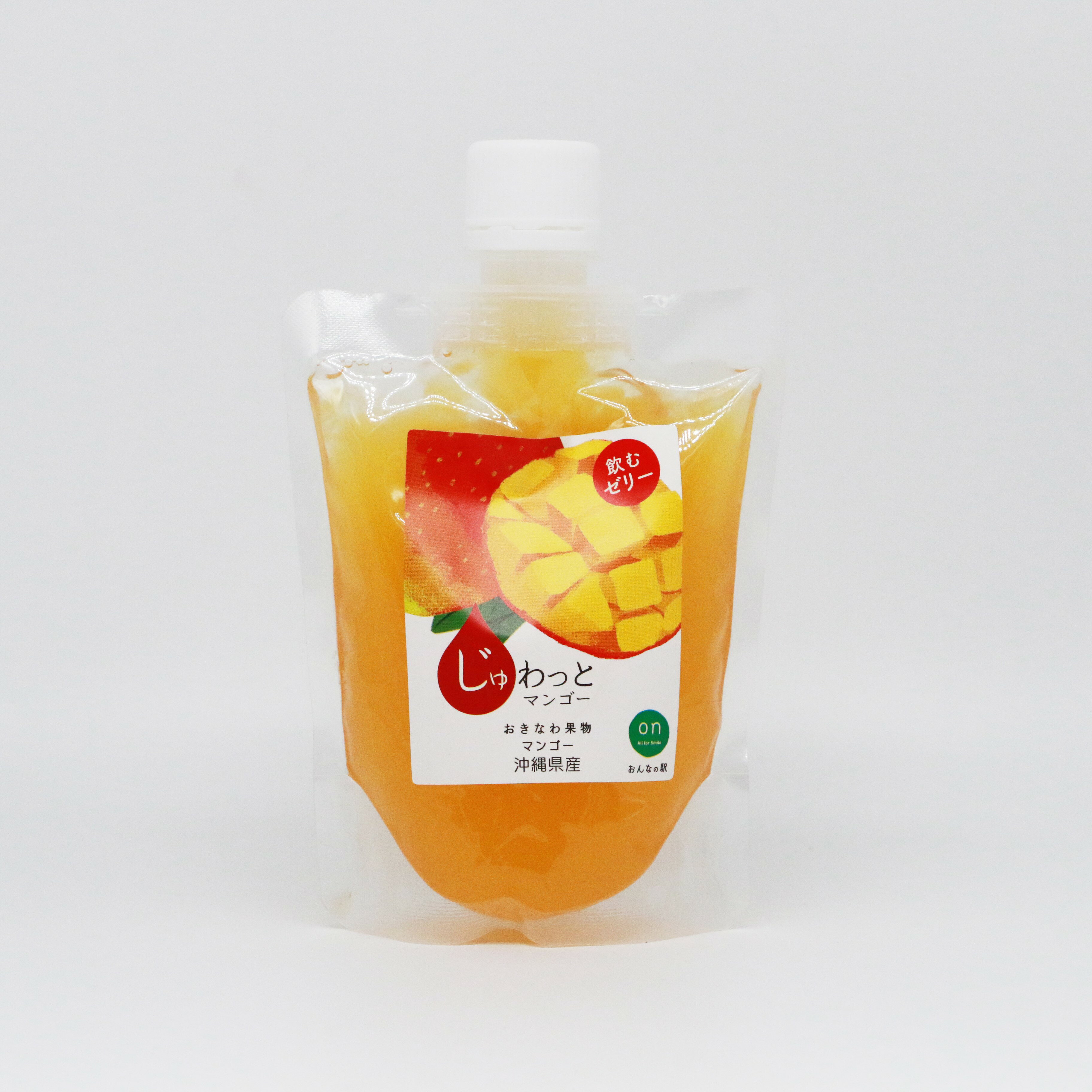 沖縄県産のマンゴーを贅沢に使用した『じゅわっとマンゴー』は、まるでフレッシュマンゴーをそのまま味わっているかのような、濃厚で甘い味わいが特徴の飲むゼリーです。 ■沖縄県産マンゴー使用 沖縄の太陽をたっぷり浴びて育ったマンゴーを使用し、その豊かな香りと甘さをゼリーに閉じ込めました。 ■飲むタイプのゼリー 水分多めで、そのまま飲むことができる新感覚のゼリーです。種も入っており、ガシガシ噛んで栄養たっぷりの種の中身もお楽しみいただけます。 おすすめの食べ方 ・冷蔵庫で冷やしてからそのままお召し上がりください。 ・凍らせてシャーベットのようにしても美味しくお召し上がりいただけます。 ・ヨーグルトやアイスクリームにトッピングして、南国風デザートに。 ・ドレッシングやソースとしてサラダや焼肉にプラス 沖縄の恩納村から直送される「じゅわっとマンゴー」で、南国の風味豊かなひとときをお楽しみください。 販売は人気産直市場 おんなの駅 販売元である恩納村仲泊にある「おんなの駅」は、観光のお客様にはもちろん地元の皆さまにも大人気の産直市場で、季節のフルーツやお土産品のコーナー、様々なフードが楽しめる飲食店からなる複合施設です。 いつお伺いしてもお客様で賑わう「おんなの駅」では、地元産素材にこだわった魅力溢れる商品が多数販売されています。沖縄県産のマンゴーを贅沢に使用した『じゅわっとマンゴー』は、まるでフレッシュマンゴーをそのまま味わっているかのような、濃厚で甘い味わいが特徴の飲むゼリーです。 ■沖縄県産マンゴー使用 沖縄の太陽をたっぷり浴びて育ったマンゴーを使用し、その豊かな香りと甘さをゼリーに閉じ込めました。 ■飲むタイプのゼリー 水分多めで、そのまま飲むことができる新感覚のゼリーです。種も入っており、ガシガシ噛んで栄養たっぷりの種の中身もお楽しみいただけます。 おすすめの食べ方 ・冷蔵庫で冷やしてからそのままお召し上がりください。 ・凍らせてシャーベットのようにしても美味しくお召し上がりいただけます。 ・ヨーグルトやアイスクリームにトッピングして、南国風デザートに。 ・ドレッシングやソースとしてサラダや焼肉にプラス 沖縄の恩納村から直送される「じゅわっとマンゴー」で、南国の風味豊かなひとときをお楽しみください。 販売は人気産直市場 おんなの駅 販売元である恩納村仲泊にある「おんなの駅」は、観光のお客様にはもちろん地元の皆さまにも大人気の産直市場で、季節のフルーツやお土産品のコーナー、様々なフードが楽しめる飲食店からなる複合施設です。 いつお伺いしてもお客様で賑わう「おんなの駅」では、地元産素材にこだわった魅力溢れる商品が多数販売されています。