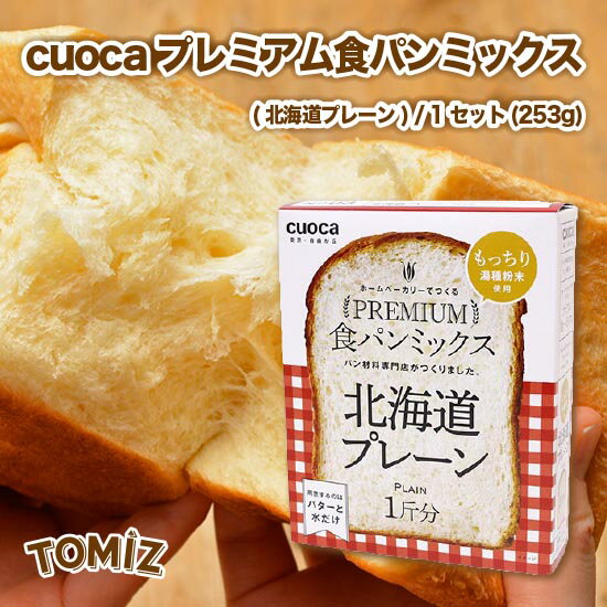 [CUOCA プレミアム食パンミックス(北海道プレーン) パンミツクスプレ-ン [パンミツクスプレ-ン]] の商品説明●ホームベーカリーに材料を入れるだけで、焼きたてパンが手軽に楽しめます。●湯種粉末配合、ふんわりもっちり食感で、焼いた翌日でもおいしいパンをめしあがれ。●こだわりの北海道産小麦で、食パン専門店のような甘みのある食パンが作れます。●湯種入りのふんわりもっちり食感をお楽しみください。●他にバター(食塩不使用バターがおすすめ)、水をご用意下さい。[CUOCA プレミアム食パンミックス(北海道プレーン) パンミツクスプレ-ン [パンミツクスプレ-ン]]のスペック●原材料名:【食パンミックス】小麦粉(小麦(北海道産))、糖類(グラニュー糖、麦芽糖)、バターミルクパウダー、食塩、全卵粉末、(一部に小麦・乳成分・卵を含む)、【ドライイースト】パン酵母/乳化剤、ビタミンC●栄養成分表示(1箱(253g)当たり):エネルギー/889kcal、たんぱく質/34.3g、脂質/3.2g、炭水化物/180.7g、食塩相当量/3.6g●アレルギー:特定:卵 乳 小麦●セット内容:食パンミックス粉250g、ドライイースト3g○返品不可対象商品