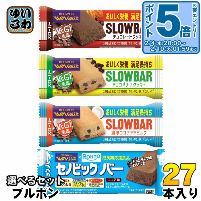 〔エントリーでポイント5倍!〕 ブルボン ウィングラム スローバー セノビックバー 選べる 27本 (9本×3) 低GI食品 栄養機能食品 手軽 菓子 チョコクッキー チョコバナナ 濃厚ココナッツ ココア