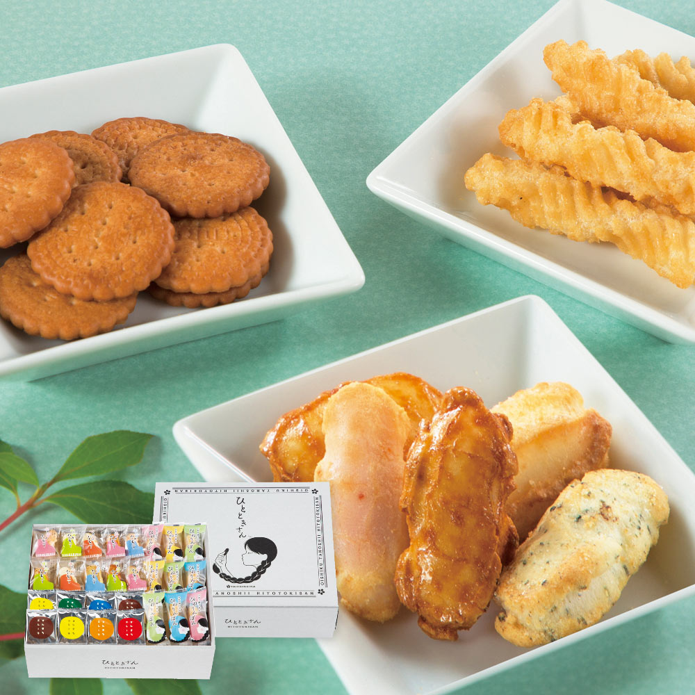 oishiku tanosii ひとときさん TO-25 おかき、ひねり揚げ、ミレーフライのアソートギフトです。おかきはクラッシック音楽を聴かせて仕込んだ「米と音のハーモニー」、ひねり揚げはあっさり塩味とコクのあるカレー味の「ひねりんぽん」、そして昔なつかしいミレーフライの「まんまるミレーヌ」とそれぞれ食感も味も違うお菓子のアソートです。 ■商品詳細:個包装(おかき・ひねり揚げ・ミレーフライ)180g ■製造生産地:日本製 ■アレルゲン:乳成分・小麦・えび ■箱サイズ:約21.5×21.5×9.5cm ■重さ:約380g ■賞味期間:製造日より常温約120日 ご注文の前に※商品ページ内の「ギフト商品発送につきまして」の画像を必ずご確認下さい。・メーカー都合によりラベルデザイン・仕様(量目等)変更する場合がございます。・メーカー直送の為、配送方法の指定が不可となります。ご注文後、配送方法が変更になる場合もございますので、予めご了承の程よろしくお願いいたします。※当店からご注文内容についてご連絡を行う場合がございます。必ずメールやお電話のご確認をお願いいたします。●さまざまなギフトアイテムをご用意しております。 各種御祝い、内祝いギフト カタログ カタログギフト 贈り物 御礼 内祝い 今治タオル おしゃれ 御祝 内祝 出産内祝い お祝い 御祝い お礼 謝礼 御返し お返し 結婚内祝い 快気祝 退院祝い 快気内祝 開店祝い 御中元 お中元 お歳暮 お年賀 プレゼント 母の日 父の日 敬老の日 クリスマス 暑中御見舞 残暑御見舞 御見舞 御歳暮 御年賀 寒中御見舞 合格祝い 開院祝い 進学内祝い 御成人御祝 新年会 卒業記念品 卒業祝い ギフトカタログ グルメカタログ グルメギフト 御卒業御祝 成人式 入学祝い 入学内祝い 就職祝い 入園内祝い 御入園御祝 金婚式御祝 銀婚式御祝 御結婚お祝い ご結婚御祝い 御開店祝 御結婚御祝 結婚祝い 法事引出物 結婚式 引き出物 景品 お祝い返し バレンタイン 引出物 贈答品 粗品 引き菓子 御出産御祝 ご出産御祝い 出産御祝 出産祝い 御新築祝 新築御祝 新築内祝い 祝御新築 祝御誕生日 誕生日祝 七五三御祝 ひなまつり ホワイトデー 初節句御祝 節句 昇進祝い 昇格祝い 就任 お供え物 香典返し 志 粗供養 一周忌 三回忌 七回忌 十三回忌 十七回忌 二十三回忌 二十七回忌 御供 手土産 寸志 御仏前 御佛前 御霊前 進物 粗供養 偲草 偲び草 四十九日 七七日 忌明け 法要 仏事 法事引き出物 法事 年回忌法要 開店祝 開店御祝い 開店お祝い 御開業祝 周年記念 来客 お茶請け 御茶請け 異動 転勤 定年 退職 お餞別 粗菓 菓子折り 新歓 歓迎会 送迎会 忘年会 二次会 記念品 福袋 御見舞御礼 快気祝い 快気内祝い お土産 プチギフト 全快祝い 御挨拶 ごあいさつ 引越し バレンタインデー ご挨拶 引っ越し お宮参り 御年始 初盆 お盆 お彼岸 残暑見舞い 寒中お見舞 金婚式 銀婚式 ダイヤモンド婚式 長寿祝い 還暦祝 古稀祝い 喜寿祝い 傘寿祝い 米寿祝い 卒寿祝い 白寿祝い のし無料 ラッピング無料 メッセージカード無料 大量注文賜ります