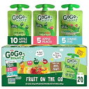GoGo squeeZ Fruit on the Go Variety Pack, Apple, Mango & Banana, 3.2 oz (Pack of 20), Unsweetened Fruit Snacks for Kids, Gluten Free, Nut Free and Dairy Free, Recloseable Cap, BPA Free Pouches