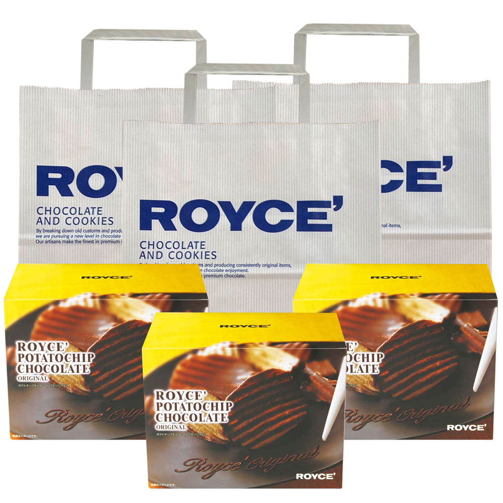 【3個セット】ロイズ ポテトチップチョコレート[オリジナル] ROYCE'紙袋3枚付き ポテトチップス|お歳暮 クリスマス ギフト チョコ かわいい お菓子 詰め合わせ 子供 誕生日 プレゼント