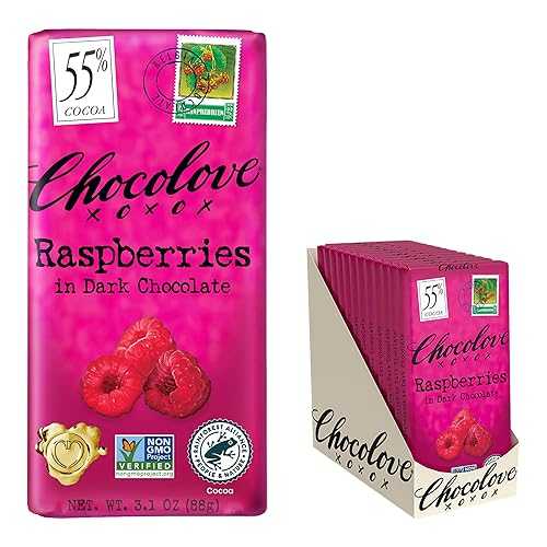Chocolove Raspberries Dark Chocolate Bars 55% Cocoa Tangy Raspberry Bits Smooth & Sweet Premium Belgian Dark Chocolate Non-GMO, 3.1 oz Bar (12 Pack)