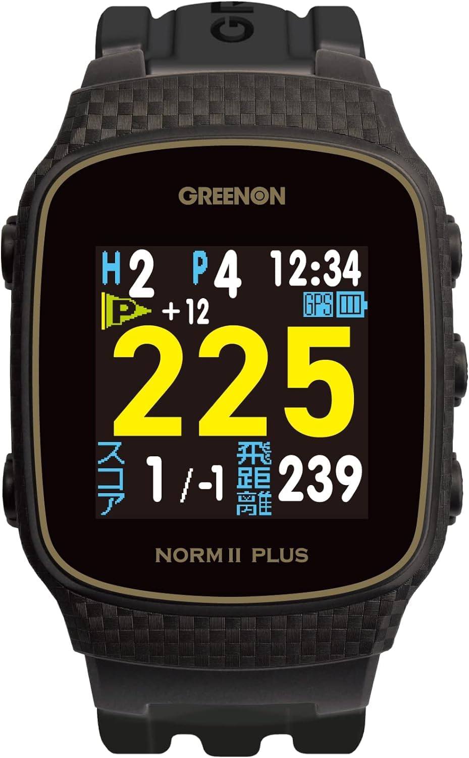 【送料無料】GreenOn(グリーンオン)ザ・ゴルフウォッチ ノルム2 プラス ※みちびきL1S対応 カラー液晶 THE GOLF WATCH NORM 2 Plus/ノルム GN301 グリーンアンジュレーション表示 色:ブラック、サイズ:56.7mm(高さ)× 40.7mm(幅)× 12mm(厚さ)