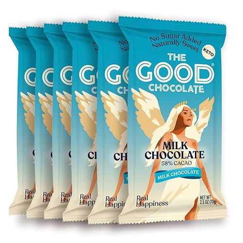 The Good Chocolate - Keto Milk Chocolate Style Bars, 80% Less Sugar, Lower Net Carb Snack, Lower Calorie, Creamy Chocolate Candy, 6 Bar Value Pack