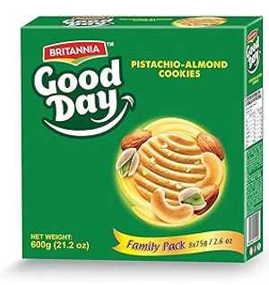 BRITANNIA Good Day Pistachio/Almond Cookies Family Pack 21.2oz (600g) - Breakfast & Tea Time Snacks - Delicious Grocery Cookies (Pack of 1)