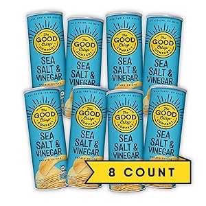 The Good Crisp Company、塩と酢、グルテンフリーのポテトチップス (5.6 オンスのキャニスター、8 個パック)、非遺伝子組み換え、アレルゲン対応、ポテトチップスナックパック、グルテンフリーのスナック The Good Crisp Company, Salt and Vinegar, Glute