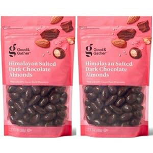 グッド&ギャザーヒマラヤ塩ダークチョコレートアーモンド。13オンス。甘くてしょっぱいスナック。カカオ64%。(2パック) Good & Gather Himalayan Salted Dark Chocolate Almonds. 13 Ounce. Sweet and Salty Snack. 64% Cacao. (2 Pack)