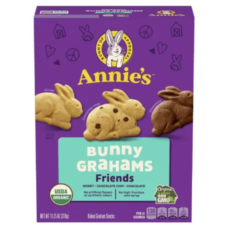 アニーズフレンズのオーガニックバニーグラハムキッズスナックのカリカリとした歯ごたえのある味は、どのウサギも大好きになるでしょう。チョコレートチップ、チョコレート、ハチミツの3種類の楽しいフレーバーが揃った、おいしい学校用スナックです。アニーズはお子様の食事を楽しいものにします。お子様のランチの一部として、このウサギの形をした焼きグラハムクラッカースナックは、お友達とシェアするのに最適です。USDA認定オーガニックで非遺伝子組み換えのアニーズバニーグラハムは、どのウサギも笑顔になるお子様用スナックです。高果糖コーンシロップ、人工香料、合成着色料を使用していないこれらのオーガニックキッズスナックで、小さな学生の一日を喜びと元気でいっぱいにしましょう。アニーズは、フルーツ風味のスナックやシリアルからマカロニチーズまで、20を超える家族向けのカテゴリーの製品を製造しています。忙しいウサギや外出が多い家族のために、私たちはおいしい食べ物を通して善良さと地球への優しさを広めることで、生活を少し楽に、より美味しくするお手伝いをしています。 アレルゲン / 免責事項 小麦を含みます。乳成分と大豆成分が含まれる場合があります。 バニーグラハムズ: おいしいオーガニックグラハムクラッカーの子供用スナック。チョコレートチップ、チョコレート、ハニーの3種類のおいしいフレーバーがあります。 学校のランチスナック:ウサギの形をした子供用の焼きグラハムスナックは笑顔を引き出します。楽しい子供のランチスナックとして、または学校の活動やスポーツの外出用スナックとして詰めてください。 認定オーガニック:USDAオーガニックおよび非遺伝子組み換えの認定を受けており、Annieの子供向けオーガニックスナックに期待されるおいしさを実現。ボウルに入れて、子供チームの野球スナックとして、または子供の食事後のおやつとして最適です。 健康的な子供用スナック:子供と親が喜ぶスナックには、人工香料、合成着色料、高果糖コーンシロップは使用されていません。