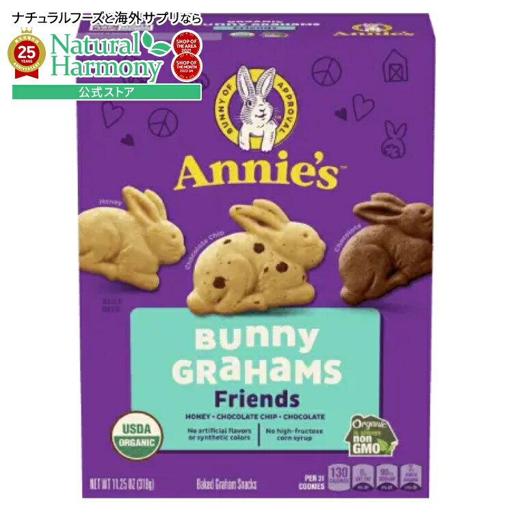 アニーズのオーガニック ハニー バニー グラハムは、栄養たっぷりのサクサクとしたおいしいスナックです。認定オーガニック原料を使用したウサギ型のグラハム クラッカーは、ランチ、旅行中のおやつ、またはお子様の放課後のおやつにおいしくいただけます。お友達とシェアしたり広げたりするのに最適で、幼児の手にも大人の手ににもぴったりのサイズです。さらに、高果糖コーンシロップを使用していないため、ハチミツ風味のウサギはすべてのウサギを笑顔にします。これらのおやつを手元に置いて、いつでもご家族に楽しいおやつと幸せをもたらしてください。アニーズは、フルーツ風味のスナックやシリアルからマカロニ チーズまで、20 を超える家族向けのカテゴリーの製品を製造しています。忙しいウサギや外出中のご家族のために、おいしい食べ物を通して善良さを広め、地球に優しくすることで、生活を少し楽に、よりおいしくするお手伝いをしています。バニーグラハムズ:濃厚なハチミツの風味がおいしいオーガニックハニーグラハムクラッカーお子様に優しい: 小さな手にぴったりの楽しいウサギの形をしたハニーグラハムクラッカー認定オーガニック:アニーのスナックに期待されるおいしさを実現する認定オーガニック原料健康的な原材料: 人工香料、合成着色料、高果糖コーンシロップは使用していませんアレルゲン / 免責事項小麦を含みます。乳成分と大豆成分が含まれる場合があります