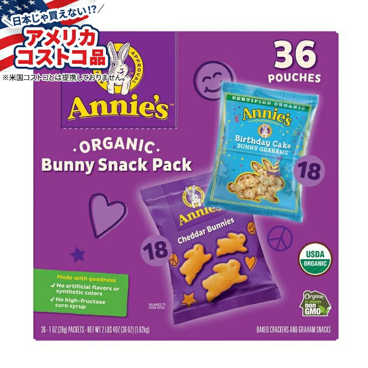 【アメリカコストコ品】アニーズ オーガニック バニースナックパック ベイクド クラッカーグラハ バラエティ パック 36個入り Annie's Organic Bunny Baked Crackers and Graham Snacks, 1.07 oz, Variety Pack, 36-count 【お取り寄せ商品】【合わせて買いたい】