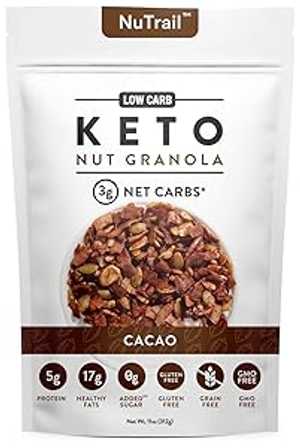 11オンス(1パック)、NuTrail - ケトカカオナッツグラノーラ健康的な朝食用シリアル - 低炭水化物スナックと食品 - 正味炭水化物3g - アーモンド、ピーカンナッツ、ココナッツなど(11オンス)(1個) Low Karb 11 Ounce (Pack of 1), NuTrail - Keto