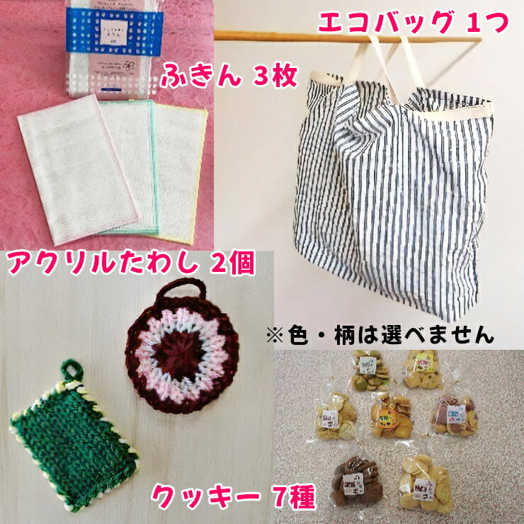 【ふるさと納税】みのりの里セット (ふきん、エコバッグ、 アクリルたわし、クッキー) 社会福祉法人いわくら福祉会 [0609]