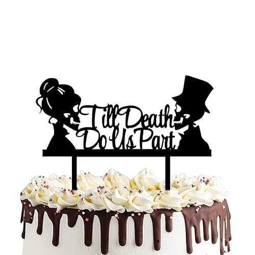 死が私たちを分かつまで ケーキトッパー - アクリル夫妻スカル ウェディングケーキトッパー ハロウィンパーティーデコレーション 死者の日サイン PANHUI Till Death Do Us Part Cake Topper- Acrylic Mr and Mrs Skull Wedding Cake Topper Halloween