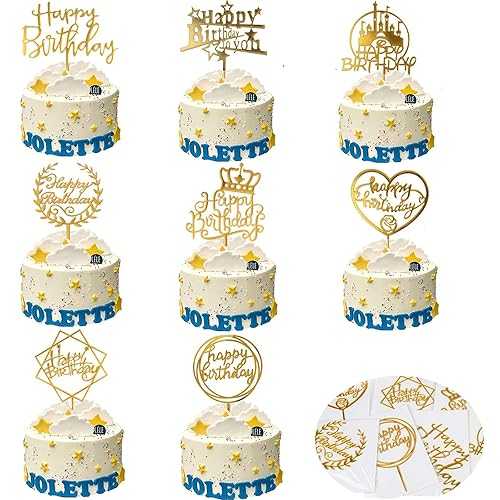 9 個のアクリルケーキトッパーゴールドハッピーバースデーケーキトッパー誕生日ケーキデコレーション用品 YMoment 9Pcs Acrylic Cake Toppers Gold Happy Birthday Cake Topper Birthday Cake Decoration Supplies