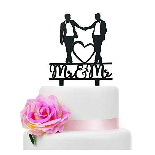 Mr & Mr ウェディングケーキトッパー、ブラックアクリルゲイウェディングケーキトッパー、ゲイカップルへのウェディングギフト、男性記念日デコレーション BOTARO Mr & Mr Wedding Cake Topper, Black Acrylic Gay Wedding Cake Topper, Wedding Gift