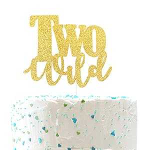 ワイルドケーキトッパー2個、2歳の誕生日サイン、ベビーシャワーパーティーデコレーション(両面ゴールドグリッター)。 Chien-Min666 Two Wild Cake Topper, 2nd Second Birthday Sign,Baby Shower Party Decorations Double Sided Gold Glitter