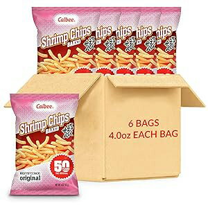 Calbee Shrimp Chips (Original, 4.0 oz) Japanese Chips Made With Real Wild-Caught Shrimp & Baked To Crunchy Perfection Indulge In Irresistible Shrimp Flavoured Chips (6 Pack)