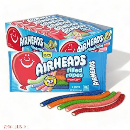 Airheads キャンディ Filled Ropes オリジナルフルーツ味 57g x 18個 ロープ型グミ キャンディ Original Fruit, 2 Oz (Bulk Pack of 18)