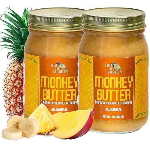 Green Jay Gourmet Monkey Butter - All-Natural, Gluten-Free Banana Butter - Pineapple Spread with Bananas & Mango - Gourmet Fruit Butter - No Corn Syrup, Preservatives or Trans-Fats - 2 x 19 Ounces