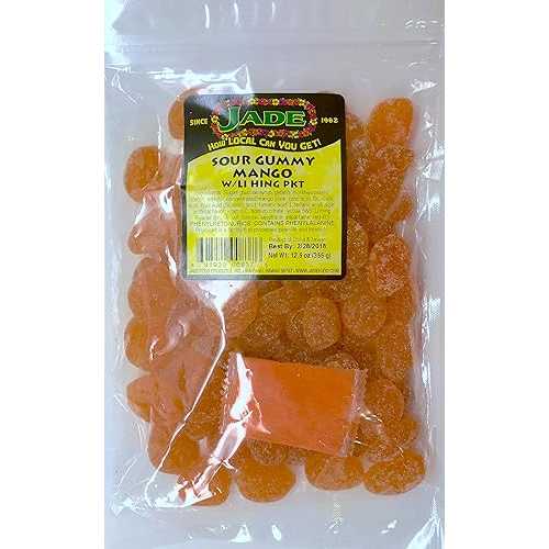 ジェイド ハワイ サワー グミ キャンディー リーヒンパケット入り (マンゴー) Jade Hawaii Sour Gummy Candy with Li Hing Packet (Mango)