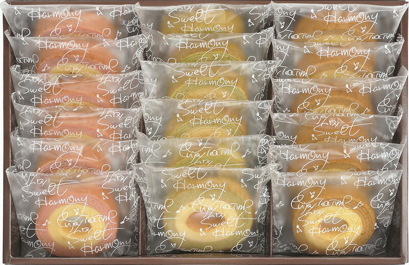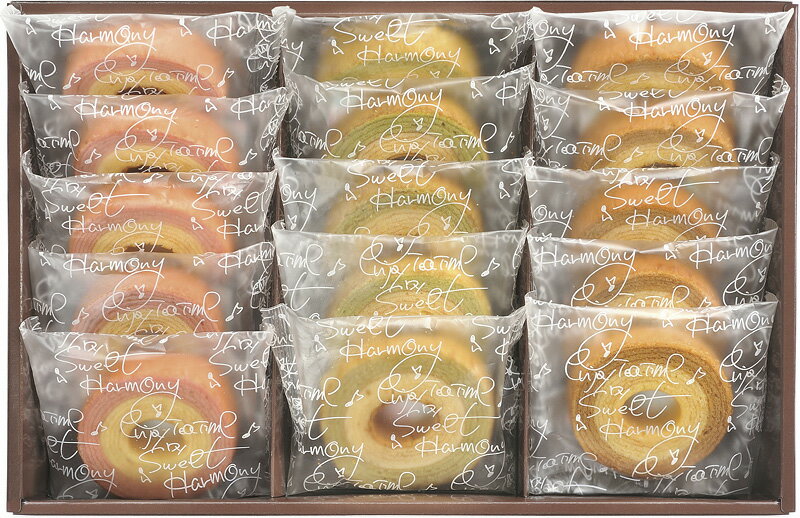 3種類の2層バームクーヘンが入ったカラフルなセット。0.65 【別途送料発生は連絡します】22.2×35×7.5cm