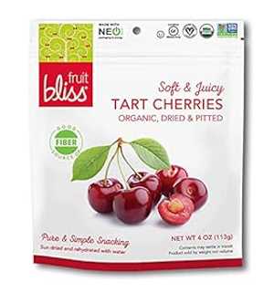 オーガニックドライチェリー、ドライフルーツスナック – 柔らかくジューシーな種抜きタルトチェリー – オーガニックフルーツスナック、天然ドライフルーツパウチ、非遺伝子組み換え、グルテンフリー、ビーガンスナック (3パック - 4オンス) Fruit Bliss Organi