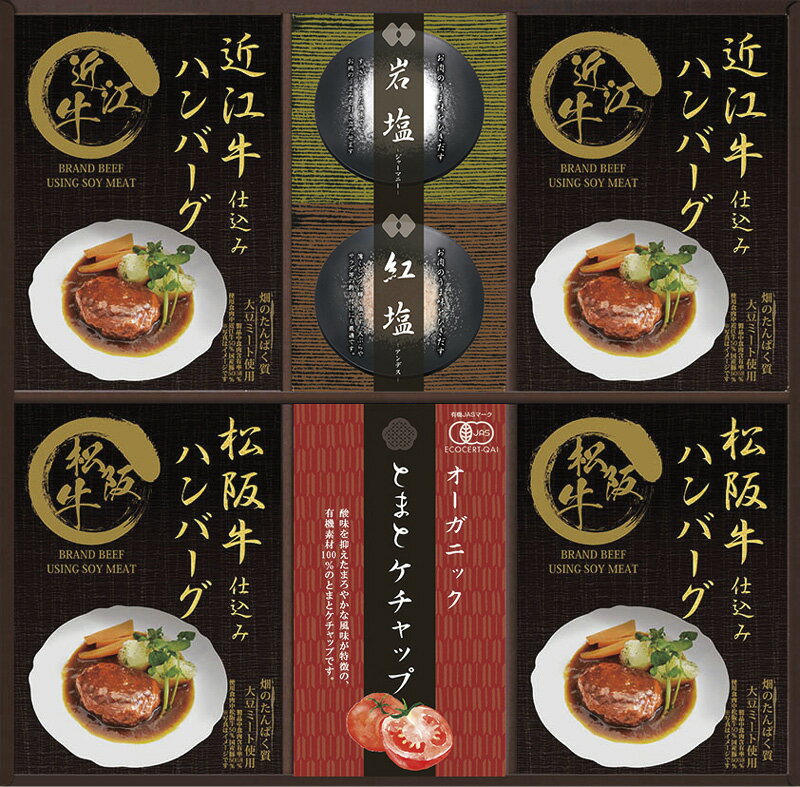銘牛の松阪牛と近江牛を使用した煮込みハンバーグは、レンジ対応のレトルトパックで簡単に調理いただけます。それぞれの肉の旨みを最大限にいかし、大豆ミートを入れることによって、ヘルシー志向に仕上げました。0.4 【別途送料発生は連絡します】37.6×25.2×4.3cm