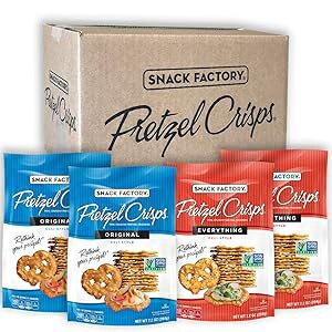 スナックファクトリー プレッツェルクリスプ、オリジナルフレーバーとエブリシングフレーバー、7.2オンス、4パック(各2個) Snack Factory Pretzel Crisps, Original and Everything Flavors, 7.2 Ounce, 4 Pack (2 Each)
