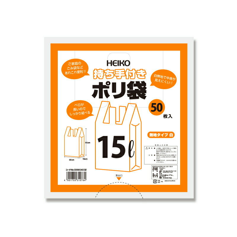 持ち手付きポリ袋 無地 白 006604032 50マイ 15L チャック付ポリ袋 25-2278-02 シモジマ ×20セット