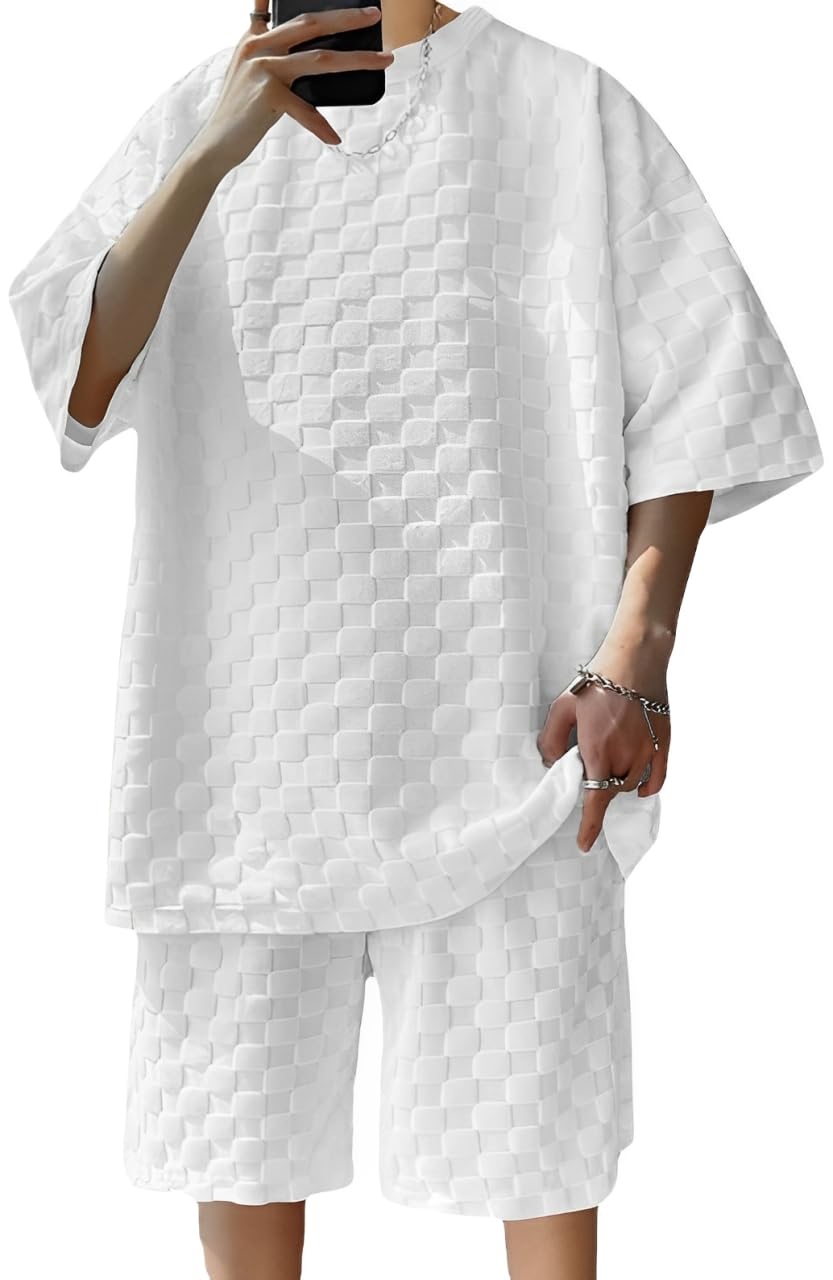 【送料無料】[aspersio] [アスペルシオ] オシャレ セットアップ 上下 半袖 ハーフパンツ b系 ジャージ カジュアルウェア メンズ 色:パールホワイト、サイズ:2XL